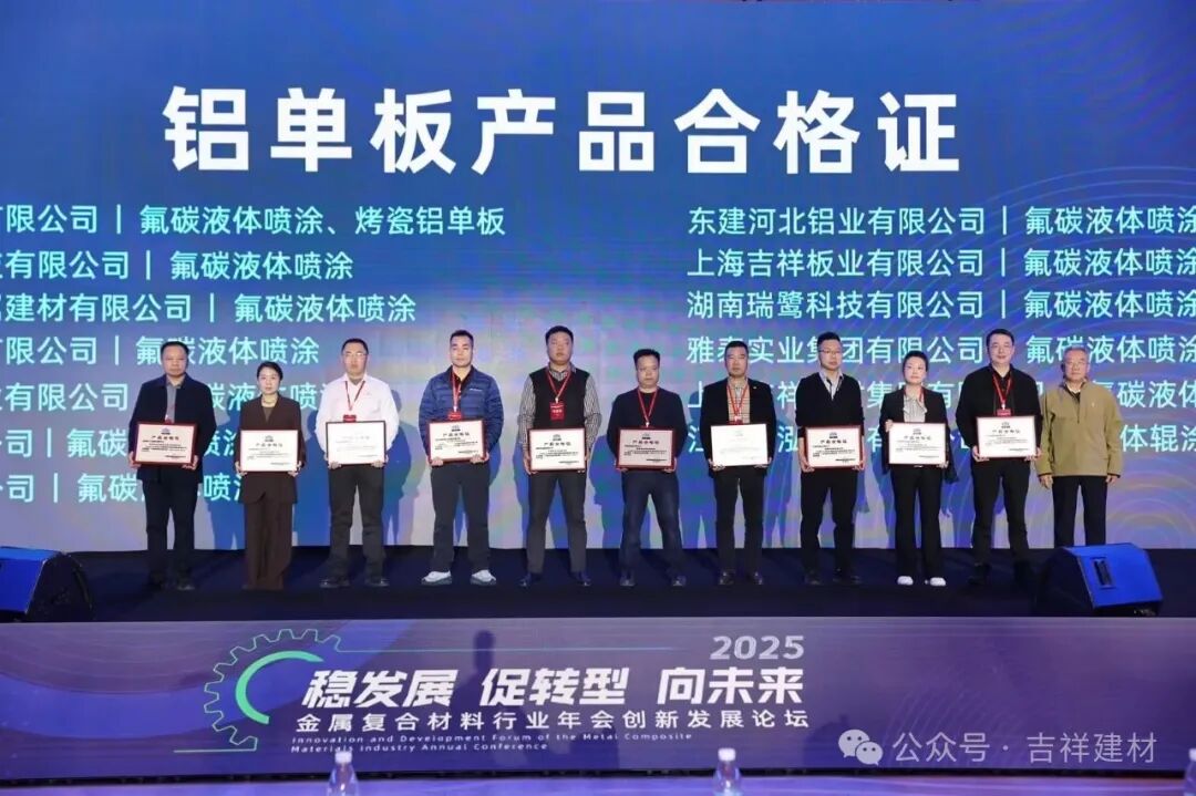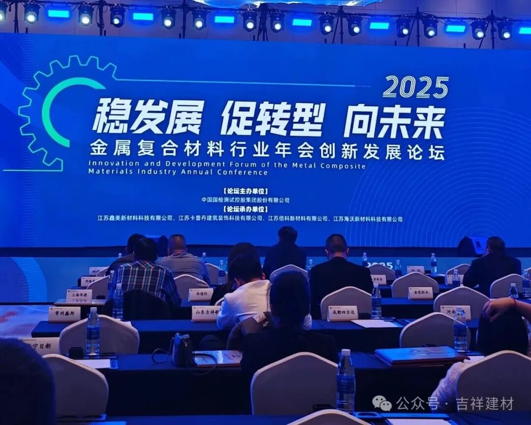 近日,以“穩(wěn)發(fā)展、促轉型、向未來”為主題的2025年度金屬復合材料行業(yè)年會創(chuàng)新發(fā)展論壇在徐州隆重舉行。作為行業(yè)內(nèi)的年度盛會,本次大會匯聚了全國頂尖的企業(yè)代表與技術專家,共同探討行業(yè)發(fā)展趨勢與未來藍圖。在這場高規(guī)格的行業(yè)盛事中,山東吉祥裝飾建材有限公司憑借其深厚的行業(yè)積累與卓越的創(chuàng)新能力,備受矚目。