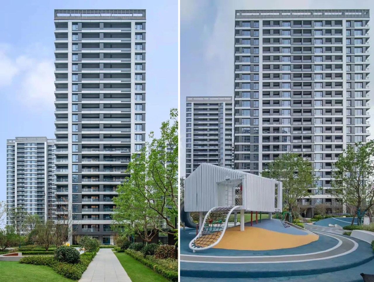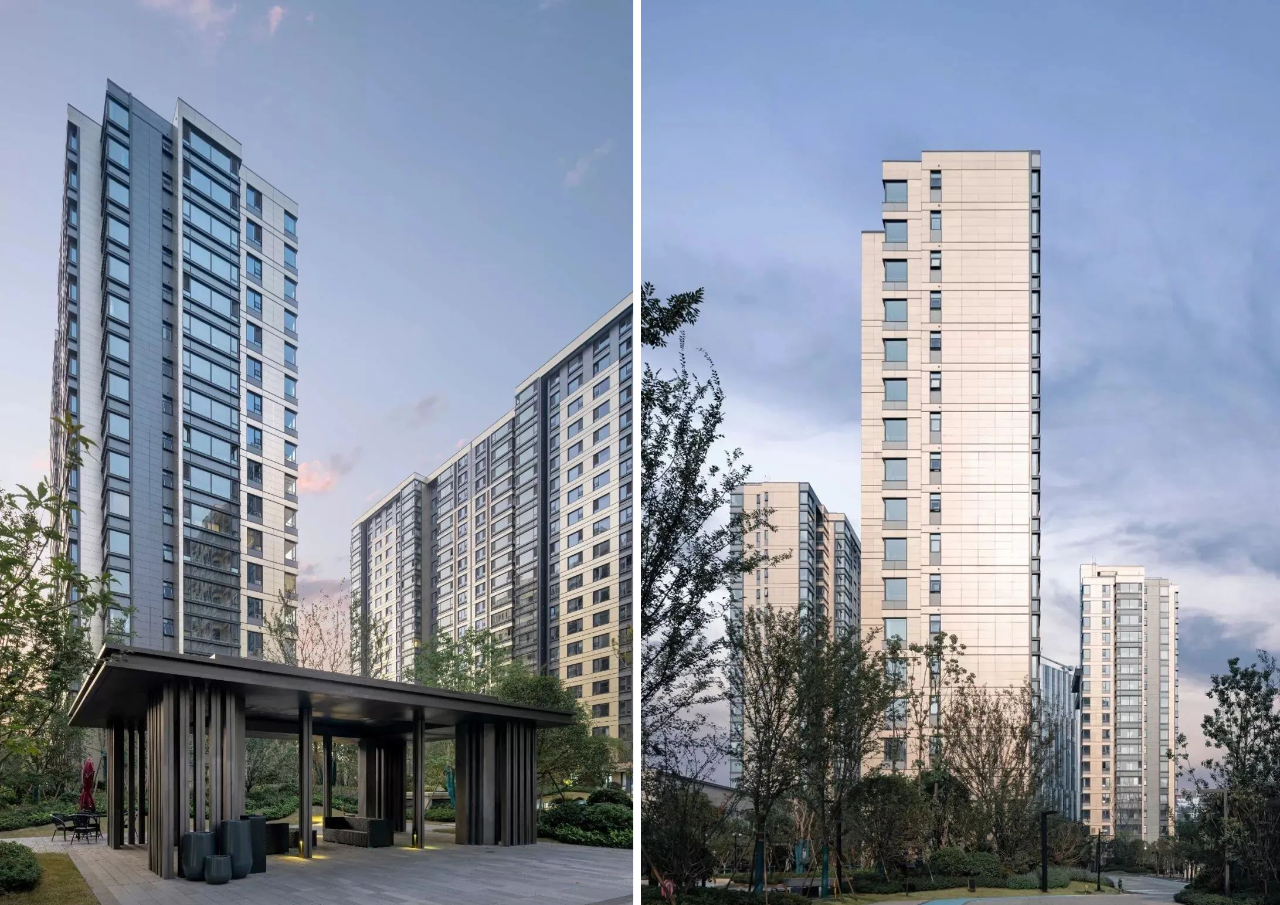 比如寧波金地華章府建筑外立面在材料的選擇上,選用了新興材料一體板等綠色建材產(chǎn)品,在充分體現(xiàn)現(xiàn)代建筑風(fēng)格的同時,最大限度地保證了立面的平整度,保留屬于建筑的那份質(zhì)感。