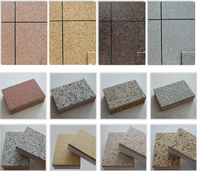 市面上常見的保溫裝飾一體板 :氟碳金屬漆保溫一體板、氟碳實色漆保溫一體板、真石漆保溫一體板、鋁板保溫一體板、花彩漆保溫一體板、仿面磚保溫一體板、仿石材保溫一體板、人造文化石、超薄石材一體板。