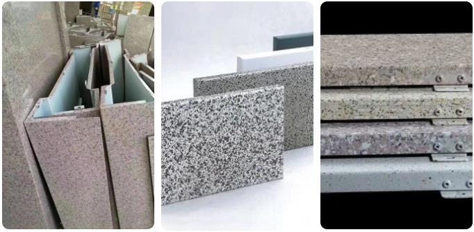仿石材鋁單板是在鋁單板的基礎上,通過特殊的噴涂工藝加工,使鋁單板具有強烈石材立體感的新型裝飾材料