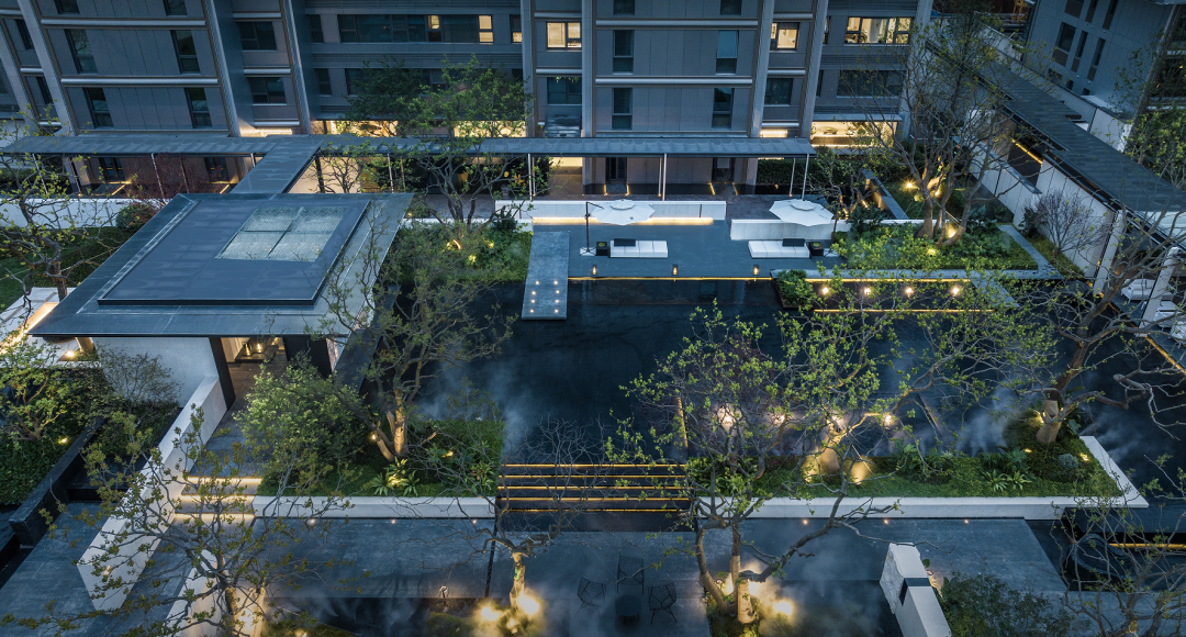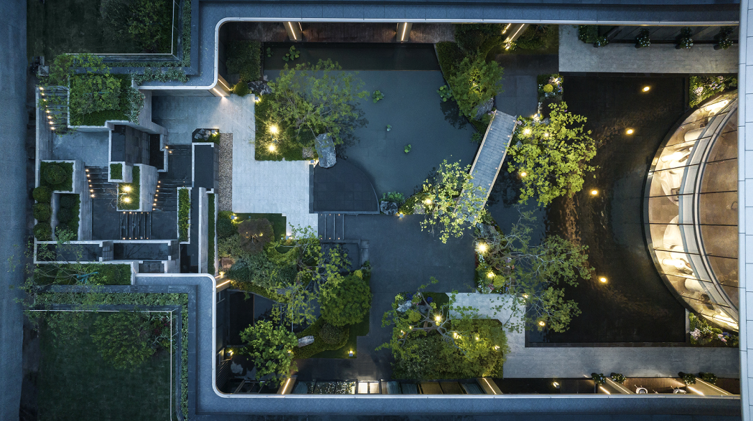 項目圍合在約3.5萬方的自然園境中,將約“七進”歸家禮序,立體下沉式庭院景觀,讓園與宅輝映,奢藏無限趣致。