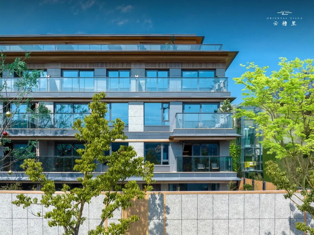 杭州綠城湖境云廬,屋檐外挑、陽臺(tái)分戶欄柵、吊頂?shù)炔课欢际褂昧?span style="margin: 0px; padding: 0px; outline: 0px; max-width: 100%; box-sizing: border-box !important; overflow-wrap: break-word !important; color: #B89970;">仿木紋鋁板,通過各種細(xì)節(jié)凸顯中式風(fēng)格。