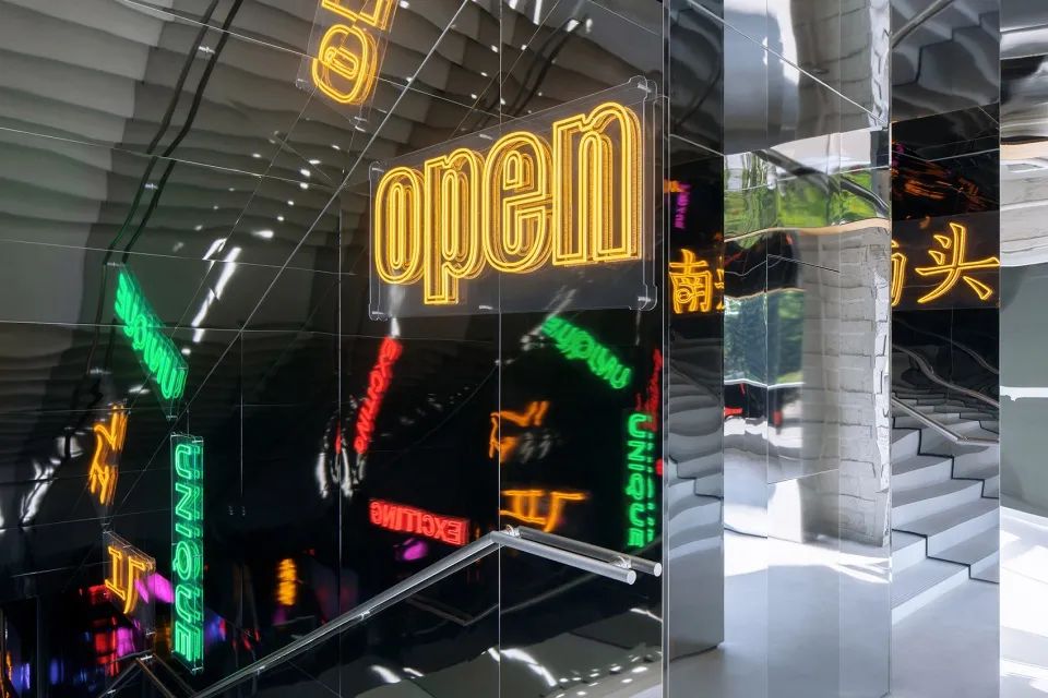 全鏡面的材料裝飾著五光十色的霓虹燈,呼應(yīng)深圳早期的街市風(fēng)貌