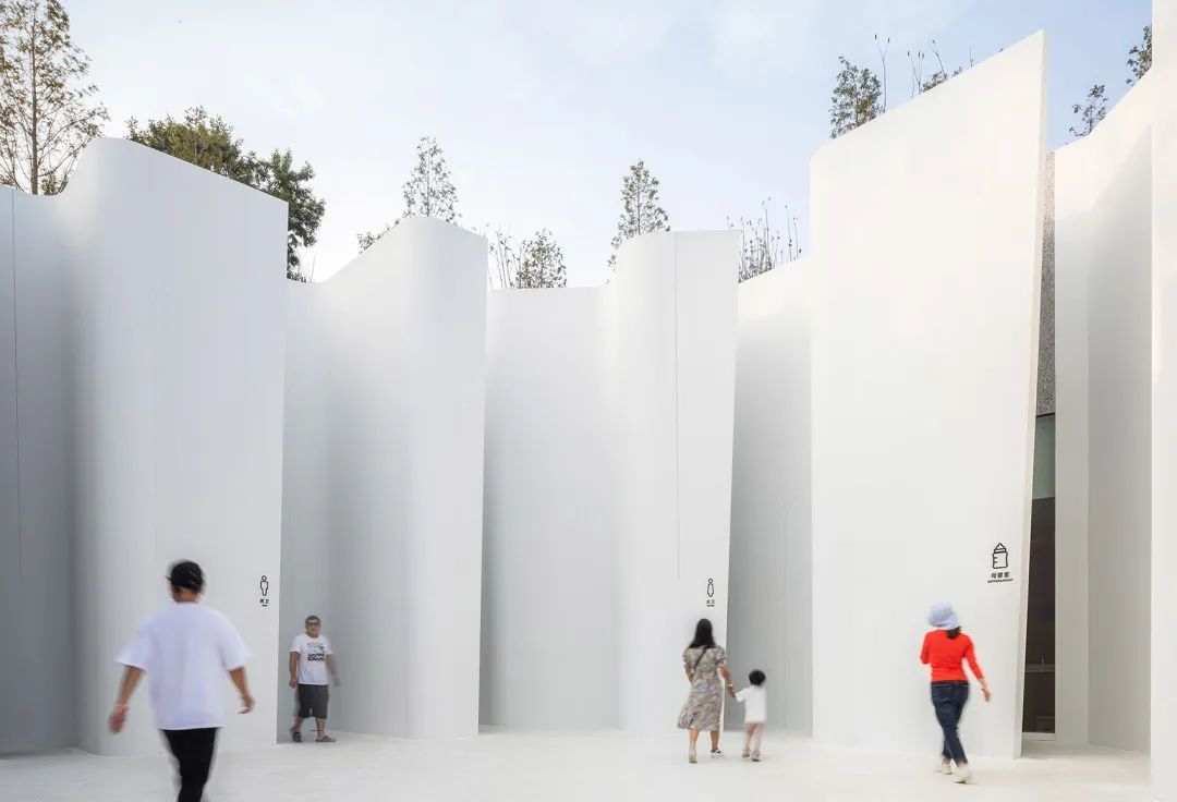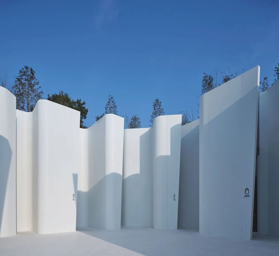 阿朵小鎮(zhèn)公共衛(wèi)生間白色復(fù)合鋁板明媚潔凈,擁有顯著的辨識(shí)性。