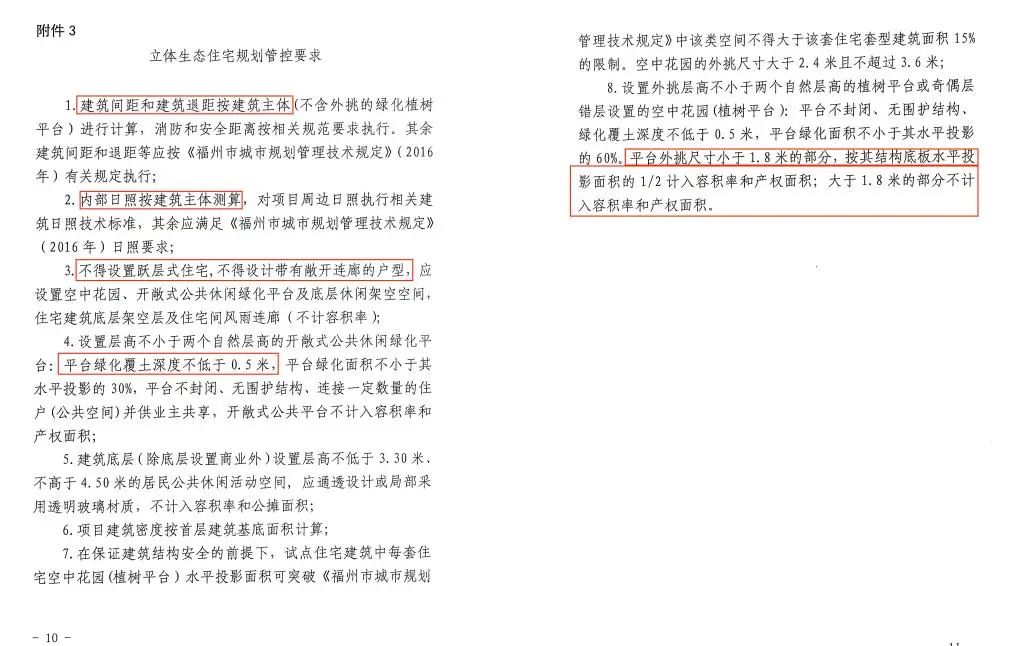 3、戶屬空中花園的層高不低于兩個自然層高,不封閉、無圍護結(jié)構(gòu),綠化覆土深度不低于0.5米,綠化面積不低于60%,出挑尺寸大于2.4米且不超過3.6米;公共休閑綠化平臺的層高不低于兩個自然層高,不封閉、無圍護結(jié)構(gòu),綠化覆土深度不低于0.5米,綠化面積不低于30%,應連接一定數(shù)量住戶并供業(yè)主共享。