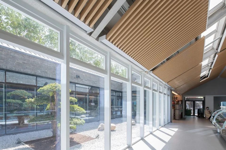 北京興華東里鄰里市集的大屋頂下,溫暖的木質(zhì)吊頂營造出一片溫暖的氛圍,為居民提供了具有停留感的場所。