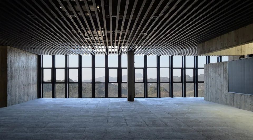 木飾面吊頂作為氛圍營造的手段,并不遮擋建筑本身的結(jié)構(gòu)骨架,而是作為建筑結(jié)構(gòu)間面的填充存在,而歸整機電設(shè)備的金屬網(wǎng)板,也以其材質(zhì)的特性,一方面將機電設(shè)備