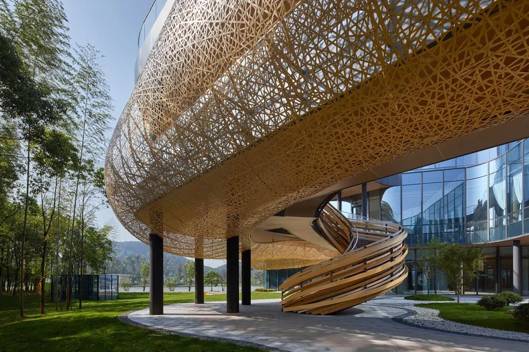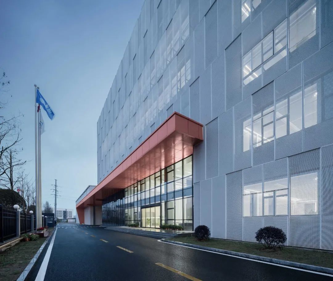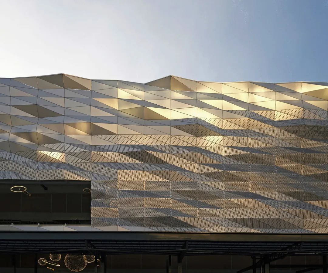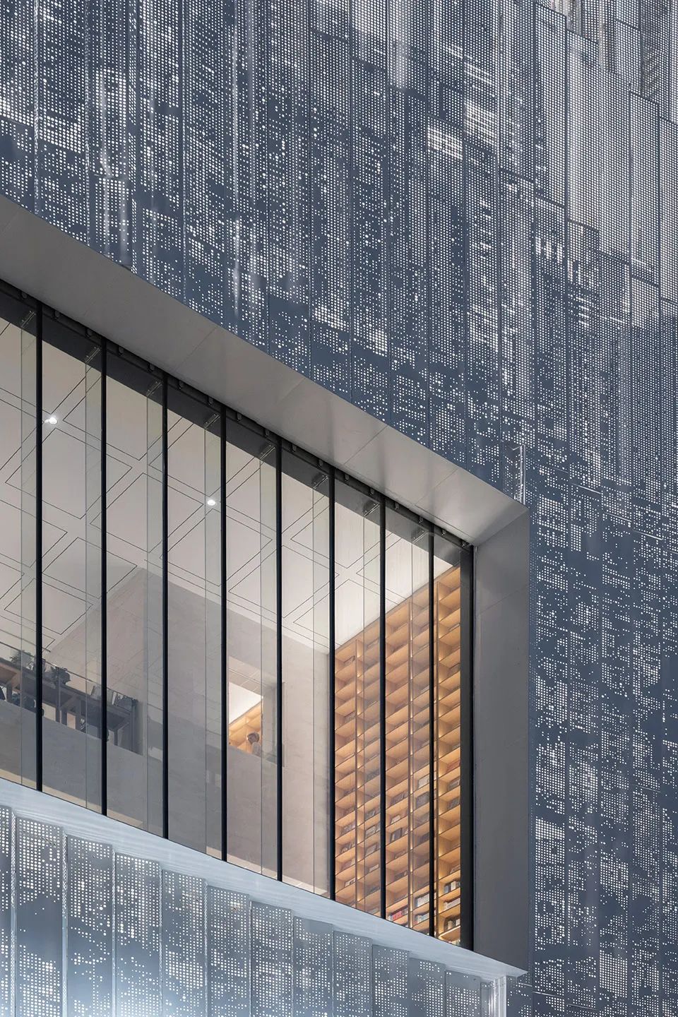 建筑通過新型沖孔鋁單板的使用,讓建筑呈現(xiàn)出輕盈、朦朧夢幻之美,創(chuàng)造了豐富而細膩的空間體驗。