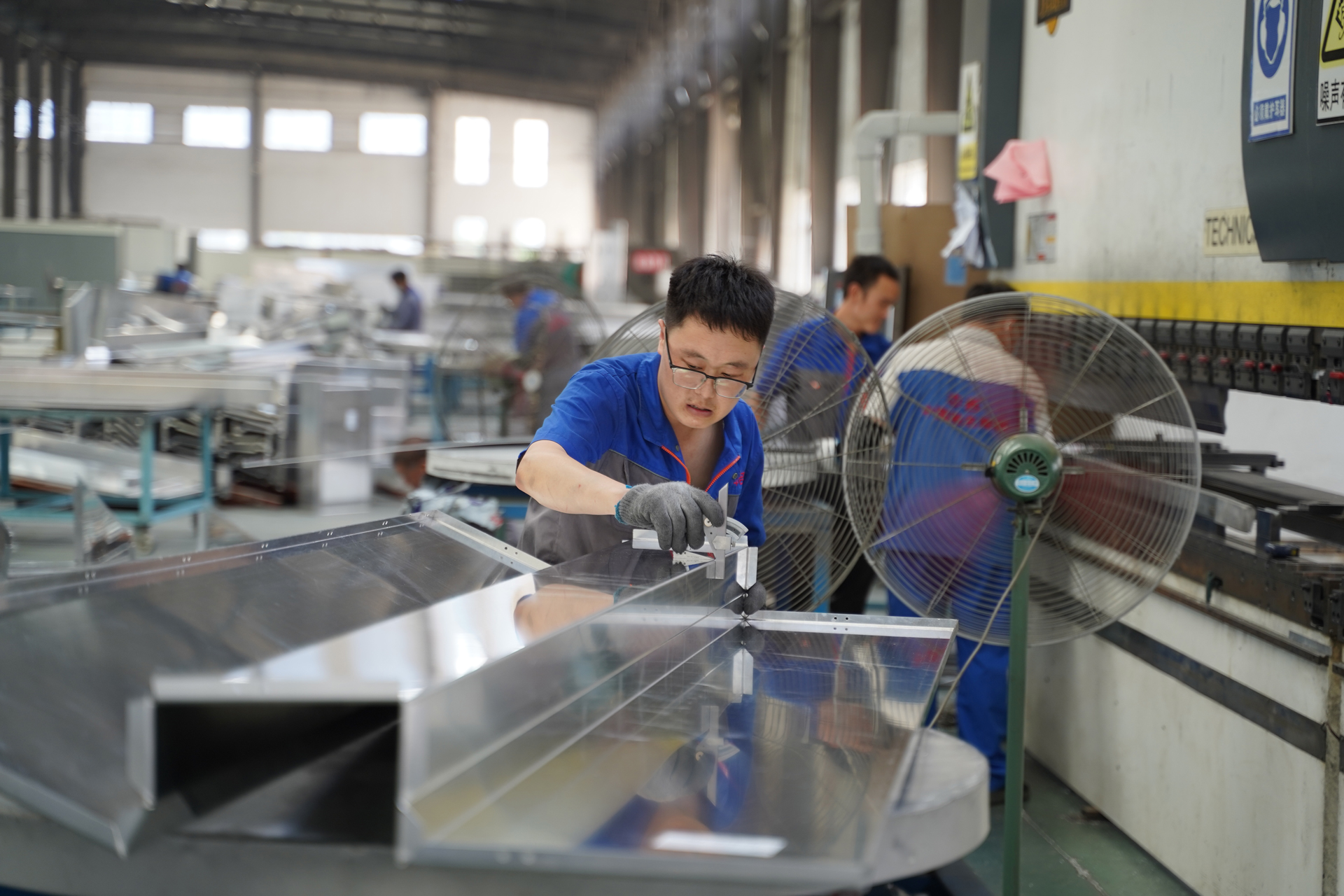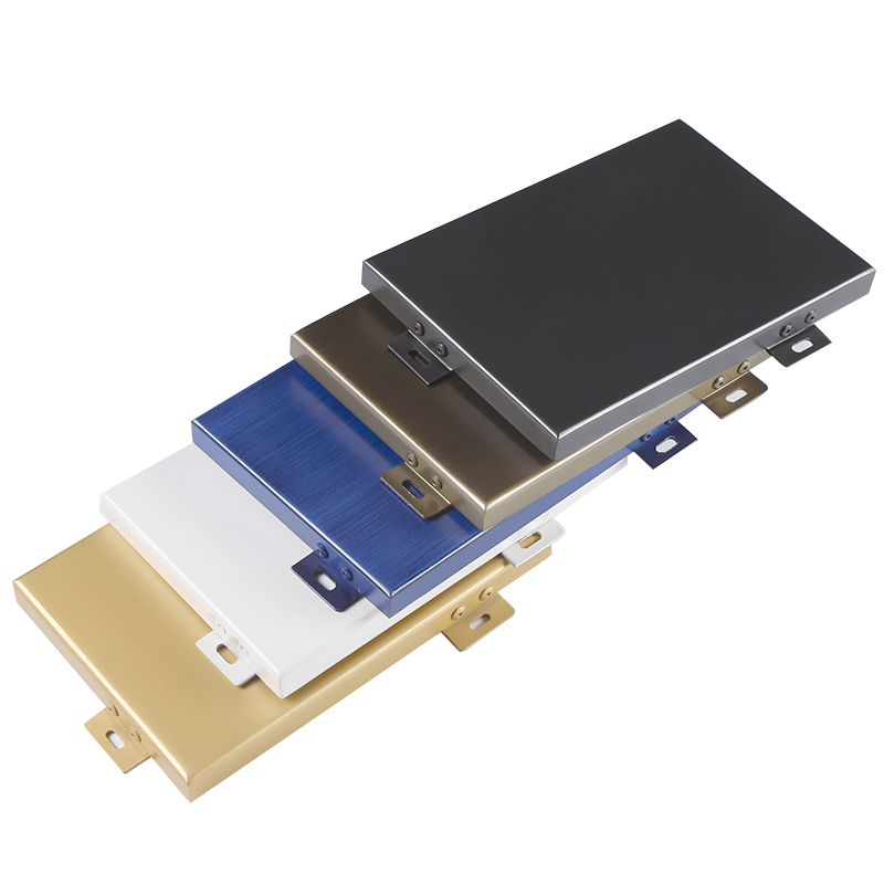 鋁單板是采用優(yōu)質(zhì)鋁合金板材為基材,再經(jīng)數(shù)控折彎等技術(shù)成型,表面噴涂裝飾性涂料的一種新型建筑裝飾材料。鋁單板主要由面板、加強(qiáng)筋和角碼等部件組成。角碼可直接由面板折彎、沖壓成型,也可在面板的小邊上鉚裝角碼成型。加強(qiáng)筋與板面后的電焊螺釘連接,使之成為一個(gè)牢固的整體,極大增強(qiáng)了鋁單板幕墻的強(qiáng)度與剛性,保證其長(zhǎng)期使用中的平整度及抗風(fēng)抗震能力。如果需要隔音保溫,可在鋁板內(nèi)側(cè)安裝高效的隔音保溫材料。