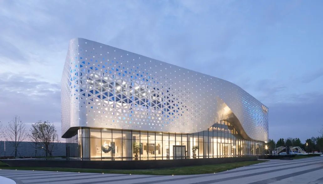 金昌·煙波辰鷺示范區(qū)采用了雙曲鋁板,流線形體的流暢弧度,散發(fā)出現(xiàn)代感與藝術感,但對于制造和安裝而言,這是比較艱難的挑戰(zhàn)。