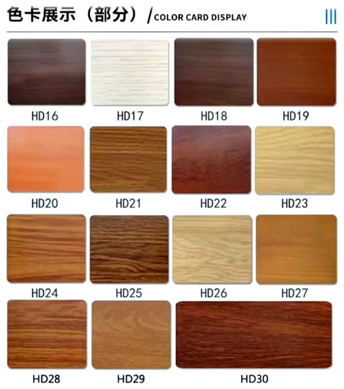 在設(shè)計(jì)中常用木紋顏色有:胡桃木、櫸木、橡木、榆木、黃梨木、烏木、紫檀木等木紋,也可以根據(jù)要求加工定制,具有很強(qiáng)的裝飾效果。