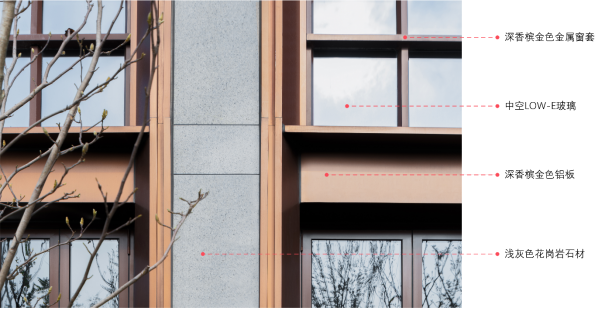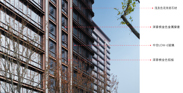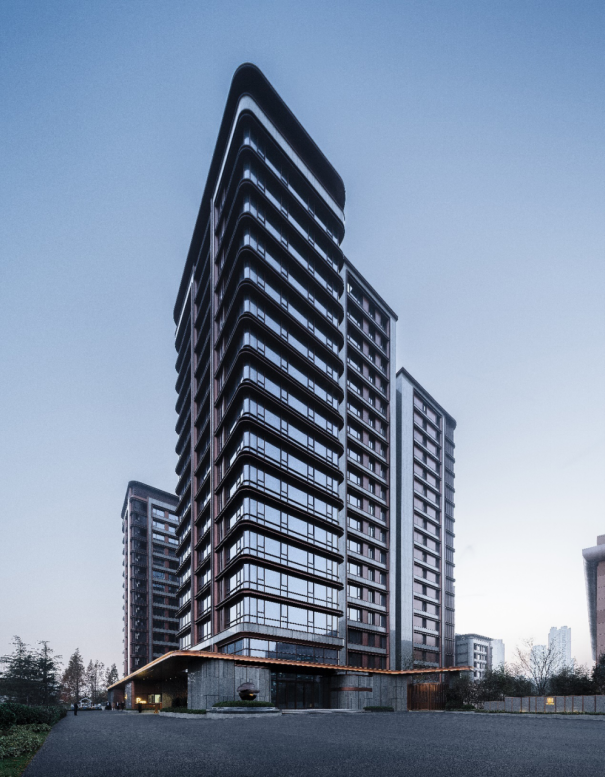 中聯(lián)?和府在立面設(shè)計上大量的玻璃幕墻組成了映水映天的主要界面,藍(lán)灰色花崗巖石材與玻璃在同一個色相內(nèi)延續(xù)著清冷雅致的底色,再輔以銅色的金屬收邊和線條勾勒,鋪開一幅力的圖案,美的網(wǎng),在居住環(huán)境中加入更親人的溫暖元素。