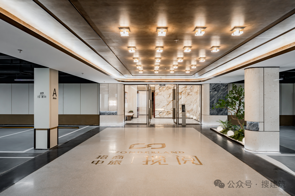 在空間上位于地下車庫和大堂之間的過渡區(qū)域——落客光廳,顧名思義,讓業(yè)主停好車明亮歸家的第一步。車庫大堂入戶光廳打破傳統(tǒng)簡陋昏暗的地庫入戶方式,起到重要的過渡和引導(dǎo)作用。