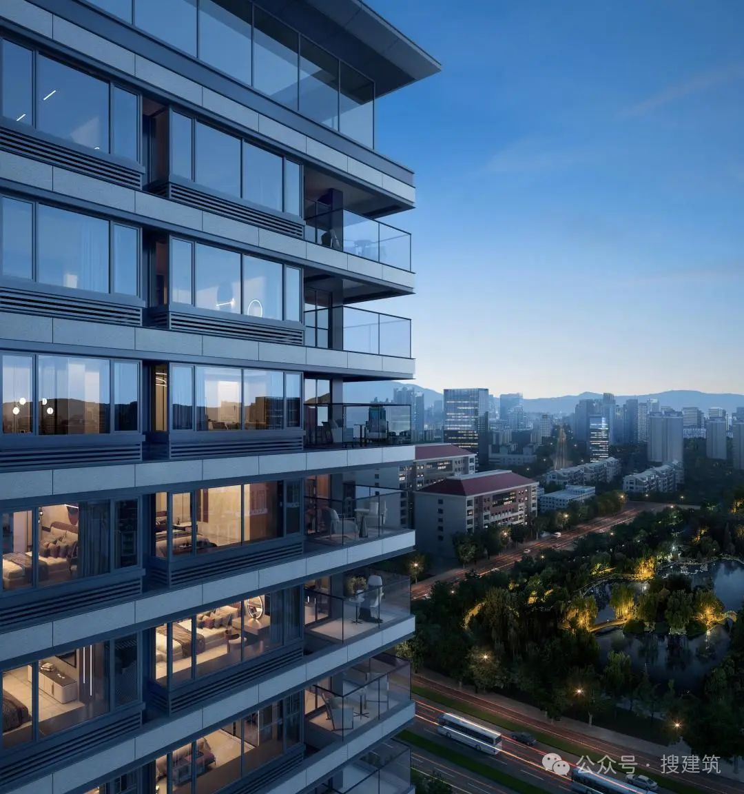 中交·象江來建筑外立面選用了一體化“L”型鋁板設(shè)計(jì)、高耐候的水包水仿石涂料、充滿細(xì)節(jié)的質(zhì)感涂料、水晶灰LOW-E等,新技術(shù)、新材料的搭配使用,形成了新的審美,塑造出全新維度的美學(xué)體系。