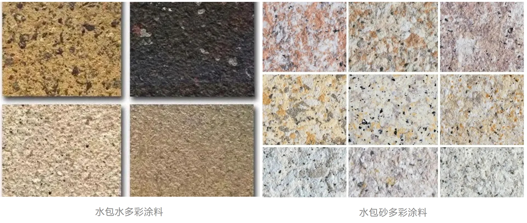 水包砂多彩涂料表面質(zhì)感粗糙,有沙子的質(zhì)感,也可以仿石灰石。