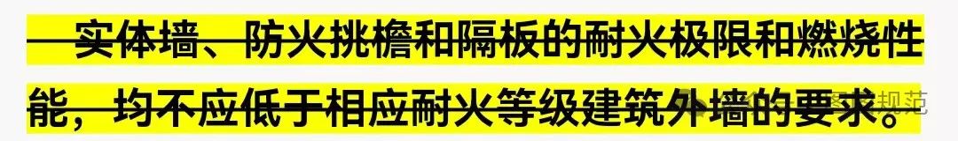 同樣需注意,實體墻的耐火極限和燃燒性能,不應(yīng)低于相應(yīng)耐火等級建筑外墻的要求。