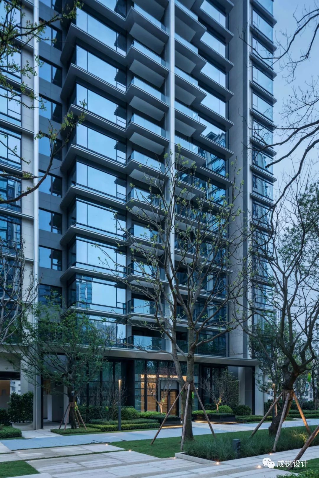 比如,重慶龍湖·塵林間,立面設(shè)計以現(xiàn)代構(gòu)成為基調(diào),重視比例,對經(jīng)典三段式的比例與尺度精準(zhǔn)把控。承襲殿之軸線,三段式、水平向、挑檐,刪繁就簡,從而減少外立面對室內(nèi)功能空間的阻礙和遮擋,提升舒適度。