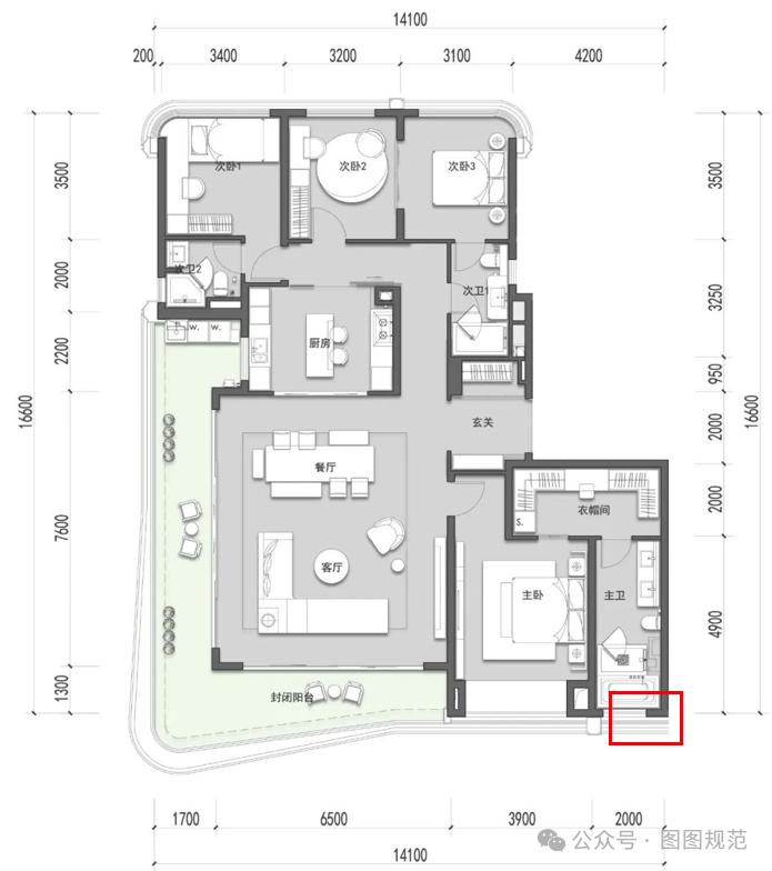 以下圖來(lái)看(具體做法不詳),透過(guò)下圖我們可以分析,如果為了達(dá)到完全的通透,也可以在老人房次衛(wèi)將飄窗固定扇使用耐火完整性和耐火隔熱性均達(dá)到1.0h的防火玻璃,來(lái)滿足水平方向防火分隔要求。