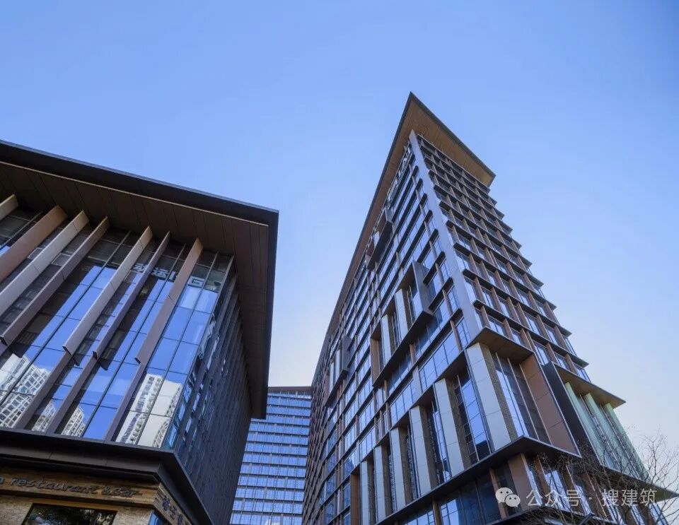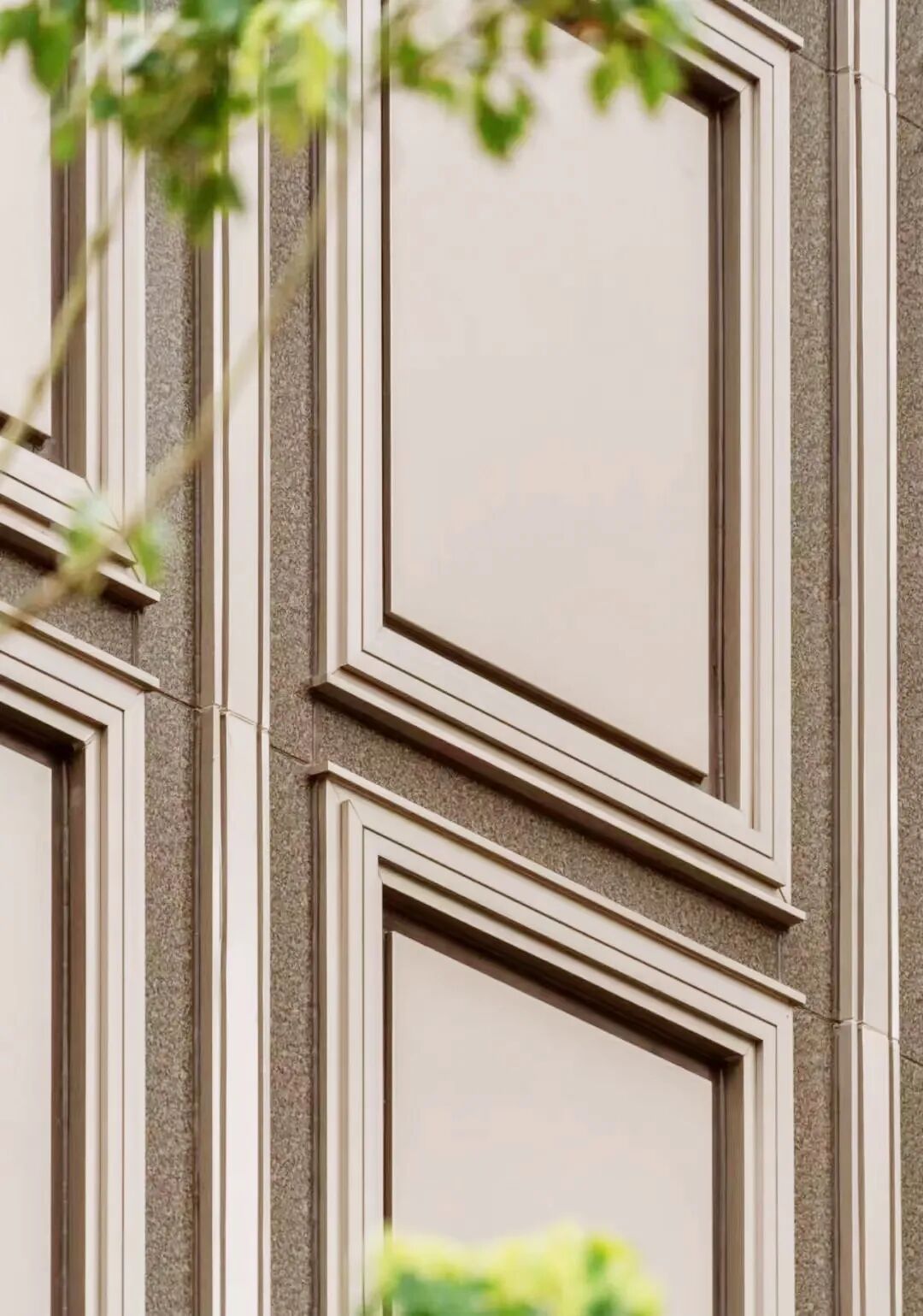 杭州錦繡公館建筑外立面建筑立面采用鋁復(fù)合材料,與普通的鋁單板相比,鋁復(fù)合板整體板面平整,棱角分明,在高端項(xiàng)目上應(yīng)用較為廣泛。香檳色鋁復(fù)合板,搭配深色石材,像巧克力一般有著一格格的精巧脈絡(luò),以及絲綢一般的鎏金光澤,在陽光下熠熠生姿。
