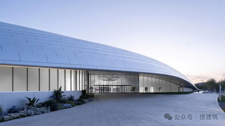 夜晚,隱匿于屋面百葉板縫間的燈光與屋面線條同步舒展,動(dòng)靜相宜、相映成趣,既呼應(yīng)著城市主干道川流不息的車流,也為城市增添了活力與動(dòng)力。
