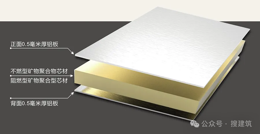 建筑幕墻用的A級防火鋁復(fù)合板標(biāo)準(zhǔn)厚度為4mm,正面及背面為0.5mm鋁合金面板,中間為3mm厚的芯材。