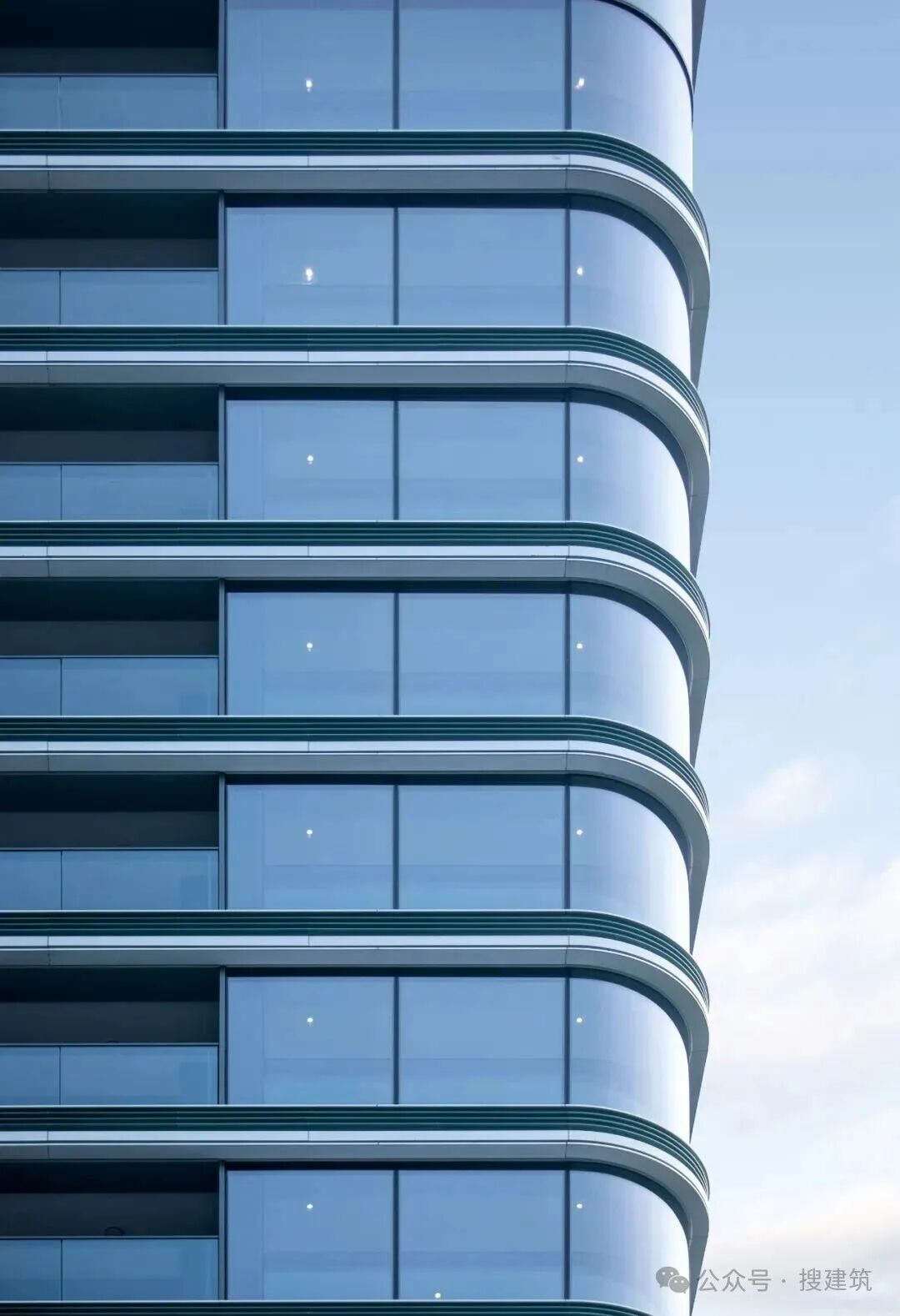 配合著大尺度的全超白高透鋼化夾層玻璃外立面,單塊玻璃重達2.5噸,部分戶型約12米連續(xù)無柱化設(shè)計,以及270°轉(zhuǎn)角全景視野。