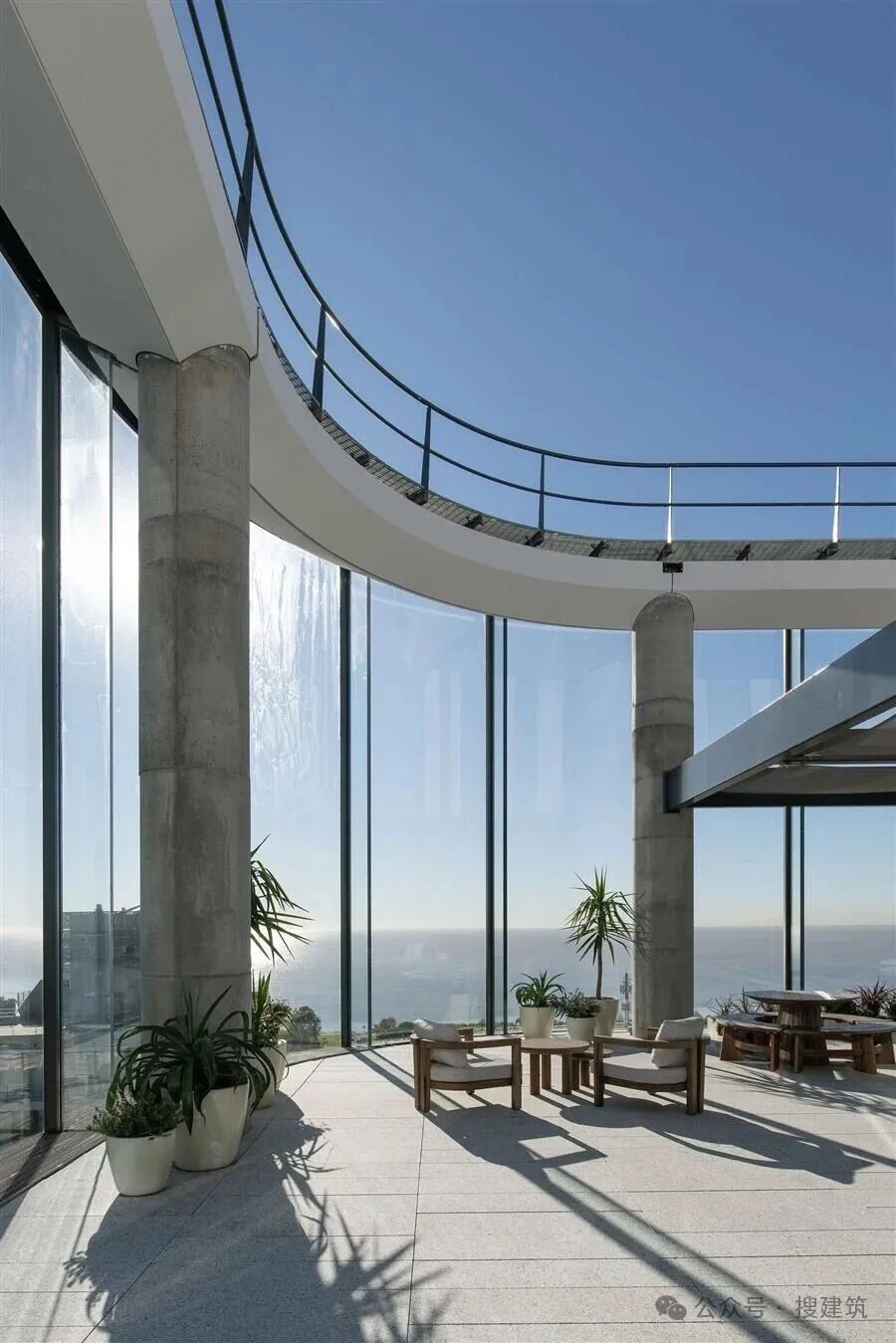 該場地毗鄰Mitre鐵路,靠近Río de la Plata,需要復(fù)雜的地下策略,以盡量減少干擾?;A(chǔ)系統(tǒng)的設(shè)計是為了穩(wěn)定周圍的基礎(chǔ)設(shè)施和管理水的入侵,核心位置靠鐵路,創(chuàng)造一個聲學(xué)緩沖,同時保持河流景觀不受阻礙。低鐵玻璃肋和結(jié)構(gòu)板確保了立面抗風(fēng)壓的性能,并創(chuàng)造了一個非常精致的透明外殼,這在布宜諾斯艾利斯是前所未有的成就。