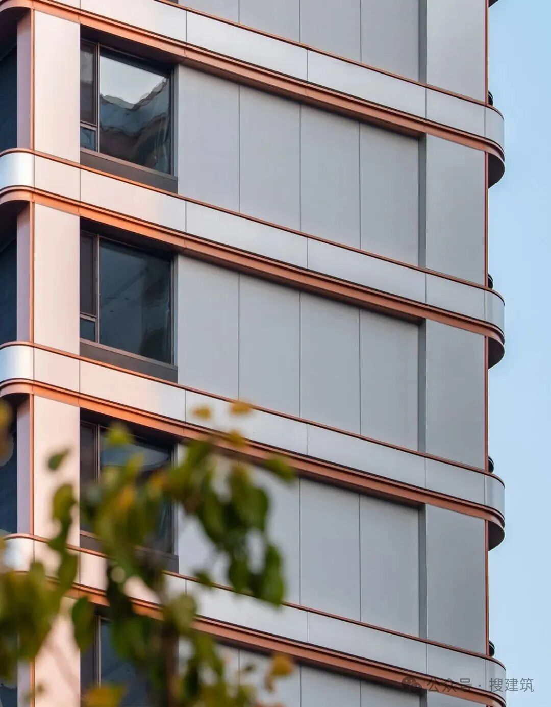 山墻面雖選擇了涂料代替鋁板,通過多輪選比與現(xiàn)場反復對涂料樣品實驗的詳細研究,最終實現(xiàn)理想中的品質(zhì)與效果。