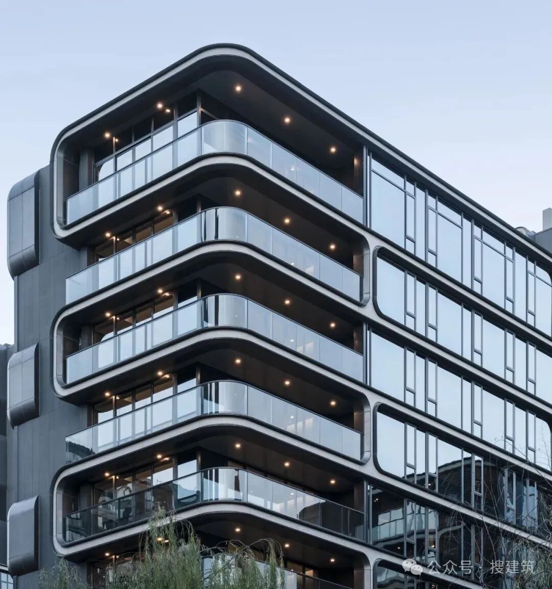 潤達豐控股 濱江·天樾建筑側(cè)面采用米黃色真石漆與深灰色涂料和深灰色穿孔鋁板結(jié)合,虛與實的對比將建筑映襯得干凈、純粹而又輕盈。