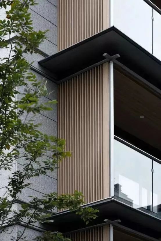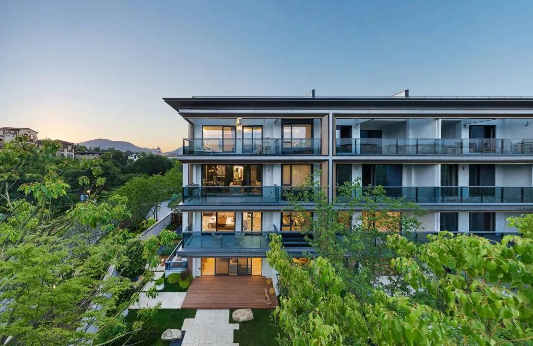 杭州綠城湖境云廬,屋檐外挑、陽臺(tái)分戶欄柵、吊頂?shù)炔课欢际褂昧?span style="margin: 0px; padding: 0px; outline: 0px; max-width: 100%; box-sizing: border-box !important; overflow-wrap: break-word !important; color: #B89970;">仿木紋鋁板,通過各種細(xì)節(jié)凸顯中式風(fēng)格。