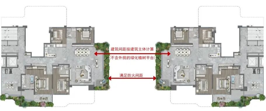 1、建筑間退距按建筑主體(不含空中花園)進行計算,消防和安全距離同時滿足相關(guān)規(guī)范要求。