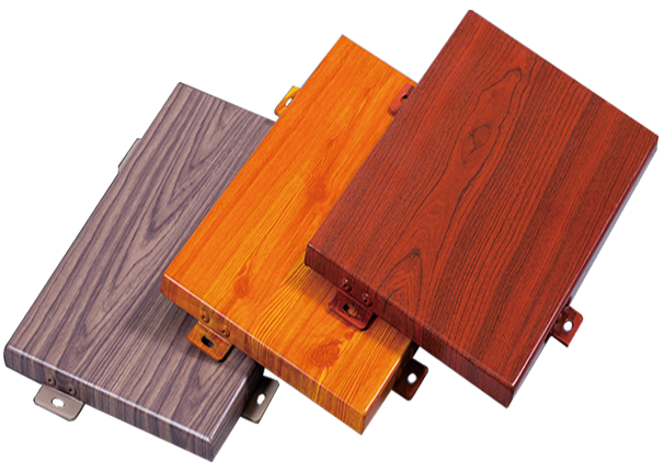 3、木紋鋁單板。木紋鋁單板是采用噴涂以及木紋熱轉(zhuǎn)印,使得木紋膜與其表面底色涂層一致的一種裝飾材料。其圖案高檔華麗、色澤紋理逼真、圖紋牢固、耐磨。