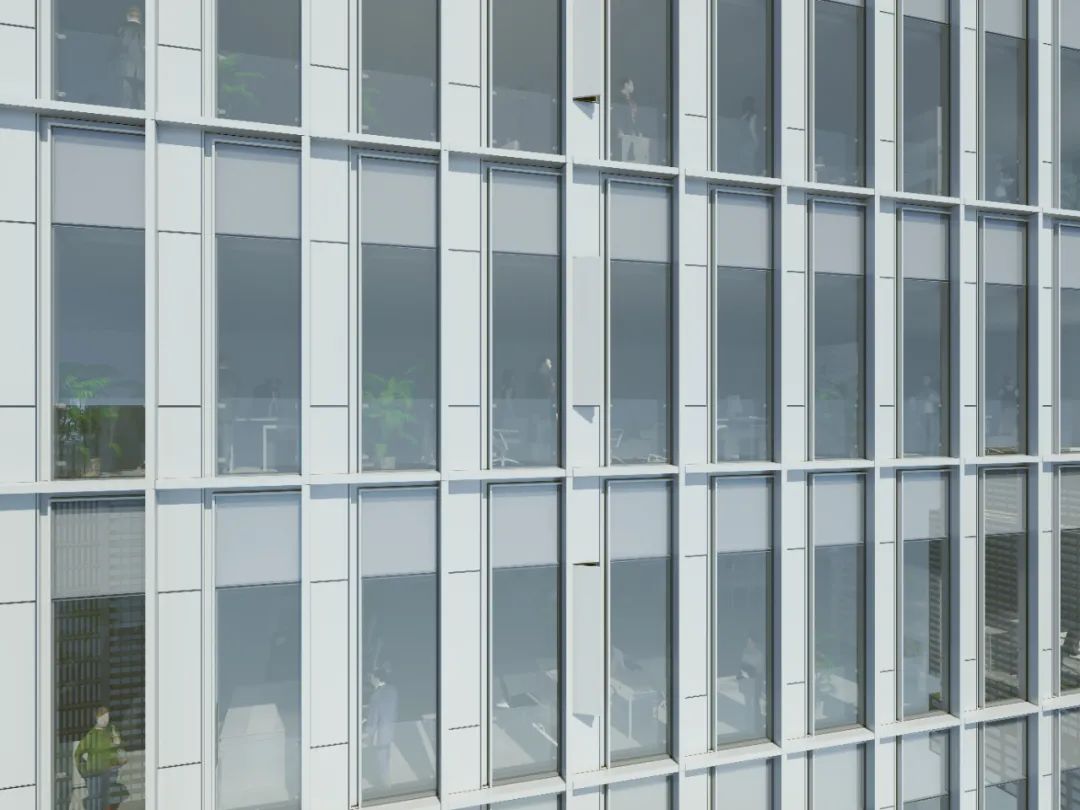△ A樓標(biāo)準(zhǔn)立面室內(nèi)側(cè)局部透視圖
