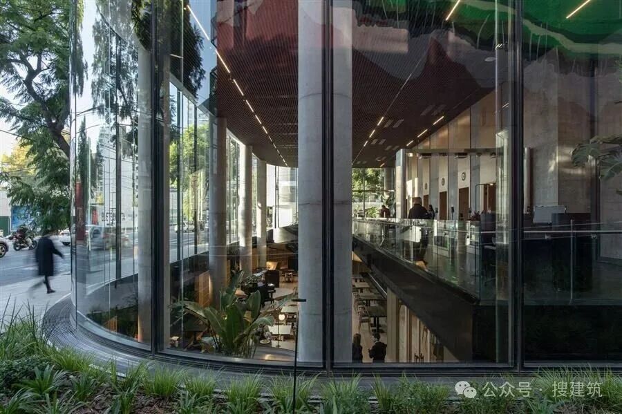 該場地毗鄰Mitre鐵路,靠近Río de la Plata,需要復(fù)雜的地下策略,以盡量減少干擾?;A(chǔ)系統(tǒng)的設(shè)計是為了穩(wěn)定周圍的基礎(chǔ)設(shè)施和管理水的入侵,核心位置靠鐵路,創(chuàng)造一個聲學(xué)緩沖,同時保持河流景觀不受阻礙。低鐵玻璃肋和結(jié)構(gòu)板確保了立面抗風(fēng)壓的性能,并創(chuàng)造了一個非常精致的透明外殼,這在布宜諾斯艾利斯是前所未有的成就。