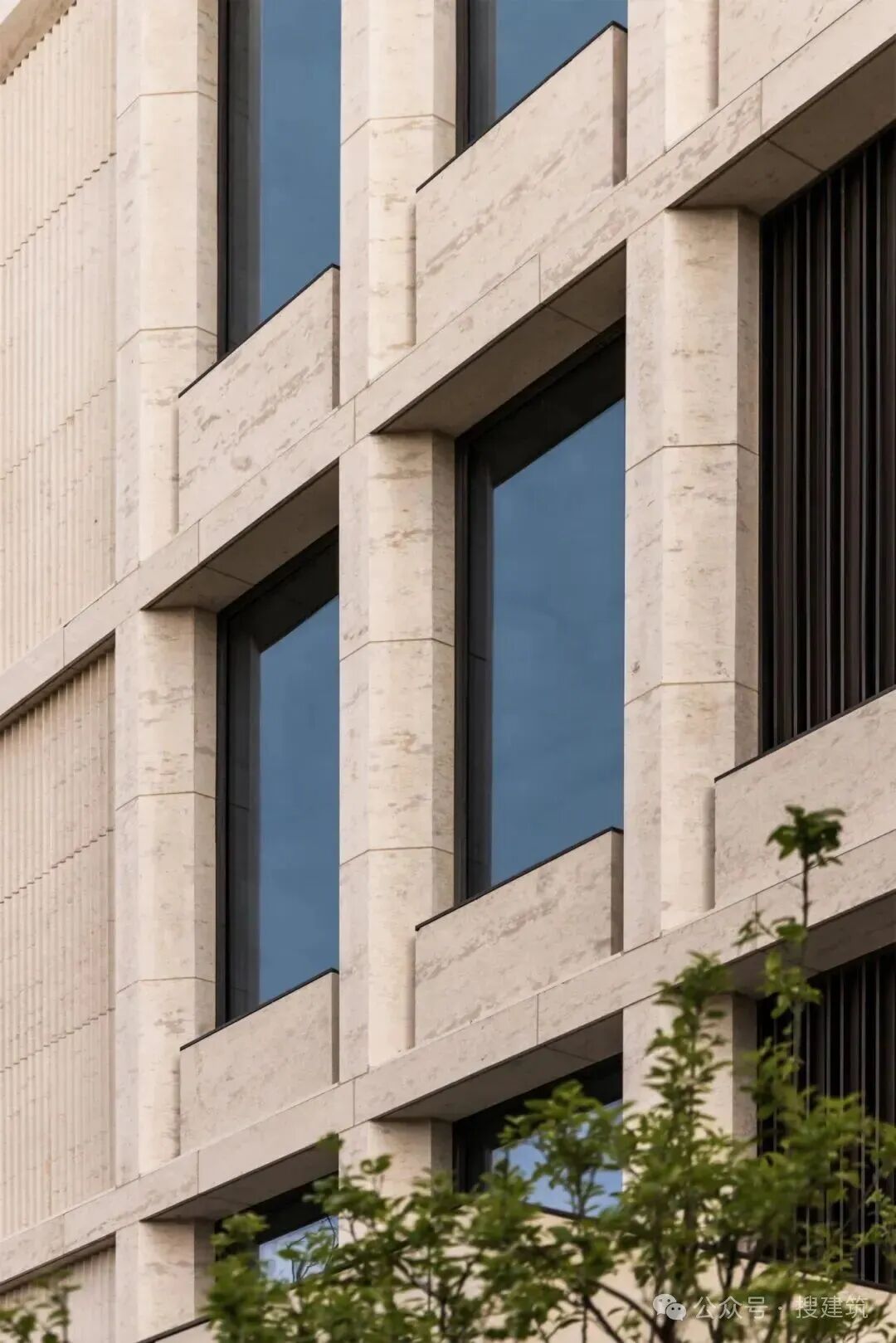 這種帶有地質(zhì)時間印痕的石材經(jīng)啞光鑿面處理,在日光下呈現(xiàn)柔和的漫反射,使建筑體量如被晨嵐輕裹般溫潤內(nèi)斂。